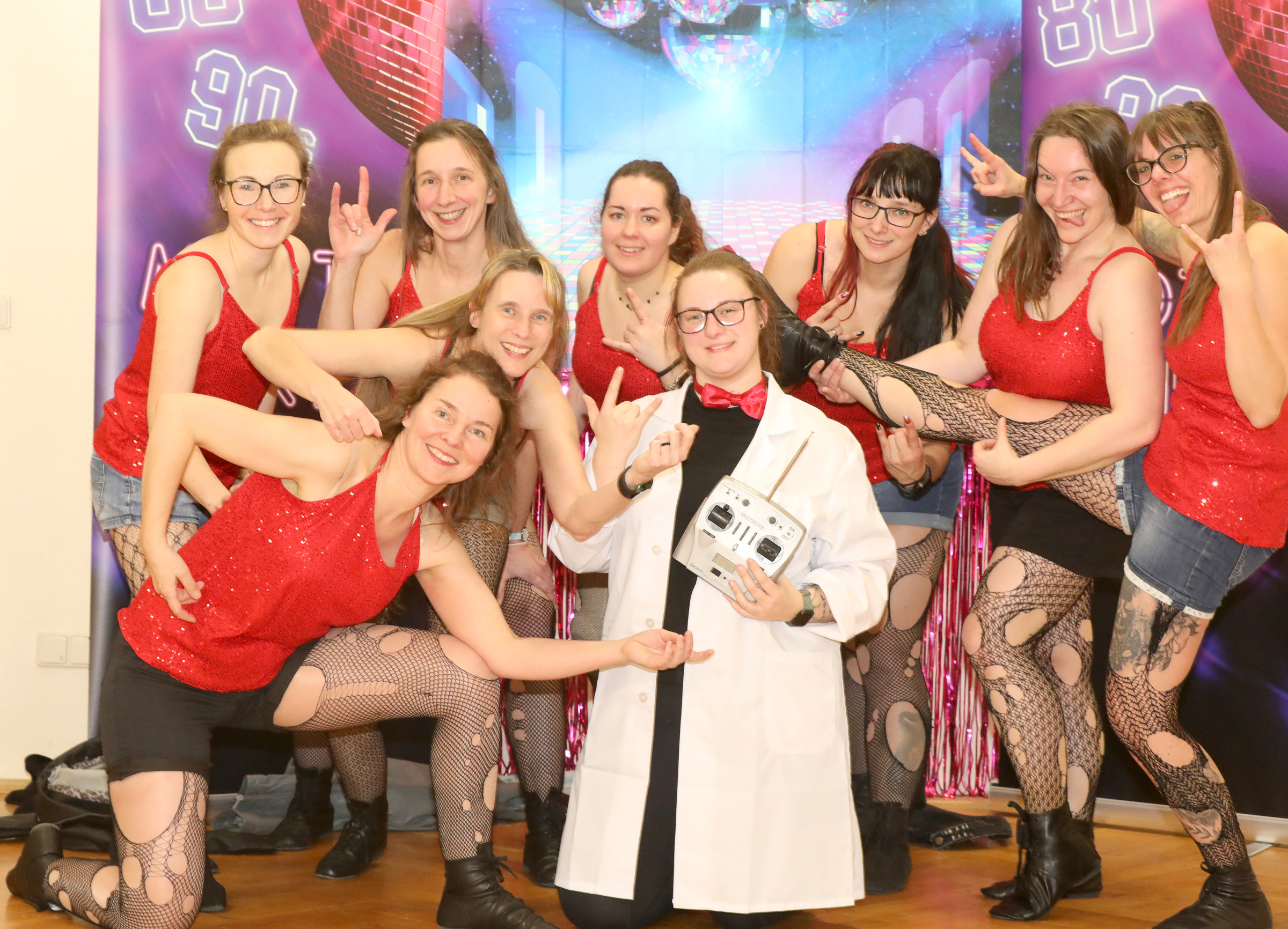 Der Saal brodelt, das Licht geht aus, die Scheinwerfer werden voll aufgezogen - es kommt das Damenballett. Unser Damenballett hat von Beginn an tänzerisch, sportlich, musikalisch in tollen Kostümen Maßstäbe gesetzt. Das fand bei Auftritten hohe Anerkennung.