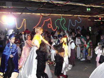 Chronikbild aus dem Jahre 2007 Vom großen Kulissenzauberer "Rosch-Er" gestaltet, erlebten dort am Nachmittag gut 400 Gnome, Prinzessinnen, Cowboys und Rotkäppchens einen märchenhaften Kinderfasching.